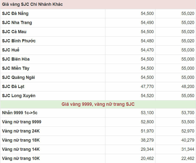 Hiện công ty Vàng bạc đá quý Sài Gòn (SJC) niêm yết giá vàng miếng mua vào ở mức 54,5 – 55,02 triệu đồng/lượng (mua vào-bán ra).
