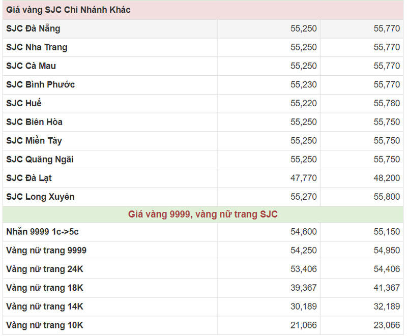 Hiện công ty Vàng bạc đá quý Sài Gòn (SJC) niêm yết giá vàng miếng mua vào ở mức 55,25 – 55,77 triệu đồng/lượng (mua vào-bán ra).