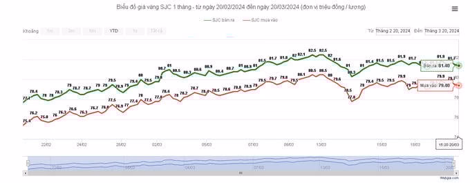 SJC Hà Nội: 79.700.000 đồng/lượng - 81.720.000 đồng/lượng