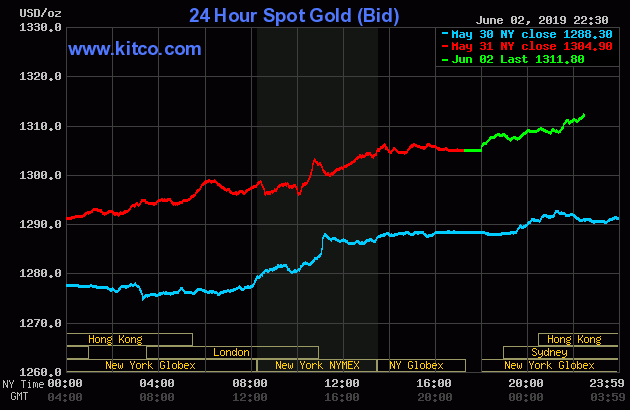 Cùng thời điểm, giá vàng giao ngay trên sàn Kitco đang giao dịch ở mức 1.311,8 USD/ounce, tăng 6,9 USD, tương đương 0,53% so với chốt phiên trước.