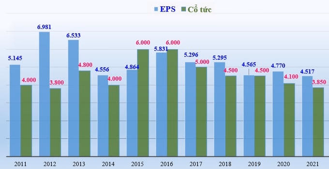 Năm 2021, công ty đạt 10.532 tỷ đồng lợi nhuận sau thuế, tương ứng EPS ở mức 4.517 đồng và chia cổ tức 3.850 đồng/cổ phiếu (tỷ lệ 38,5%). Tổng số tiền để thực hiện chia cổ tức là 8.046 tỷ đồng. Như vậy, giai đoạn 2011 - 2021, Vinamilk đã chi 62.754 tỷ đồng để trả cổ tức cho cổ đông.