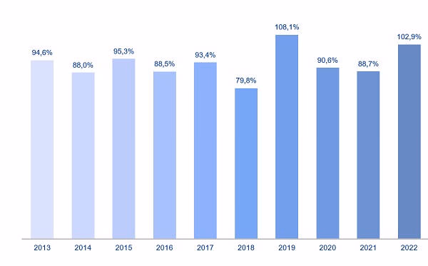 2022 là năm nhiều mặt hàng sữa nguyên liệu tăng giá kỷ lục, thậm chí có nhóm tăng đến 100%. Cùng với đó, giá cước vận chuyển, thức ăn chăn nuôi, phân bón tăng đẩy chi phí sản xuất lên cao. Tuy nhiên, Vinamilk vẫn có thể duy trì chỉ số dòng tiền từ hoạt động kinh doanh, lợi nhuận sau thuế ổn định ở mức cao. Không những thế, 2022 là năm mà chỉ số này cao thứ hai và cao nhất từ sau đại dịch COVID-19.