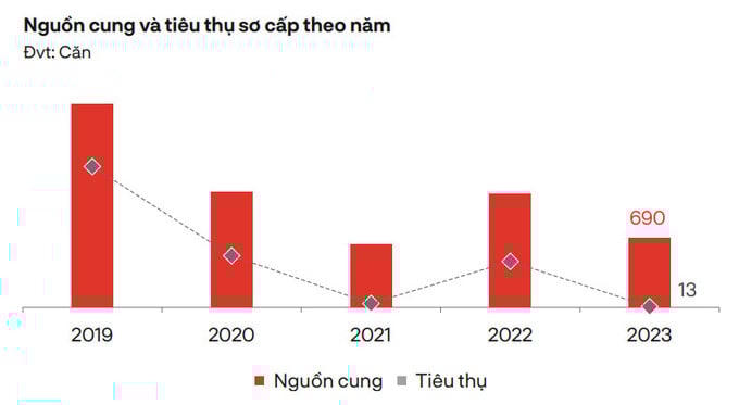 Nguồn cung sơ cấp giảm hơn 3% so với năm 2022, chủ yếu ở những dự án cũ bán từ trước. 5 địa phương có tỷ trọng nguồn cung sơ cấp cao nhất gồm Quảng Ninh, Quảng Nam, Bình Định, Khánh Hòa và Bà Rịa - Vũng Tàu nhưng rổ hàng đều trong đà giảm 7-22% so với 2022. Trong khi đó, lượng tồn kho condotel trên thị trường vẫn lớn. Số lượng tồn kho lũy tiến trong năm 2023 đã tăng lên khoảng 50.000 căn.