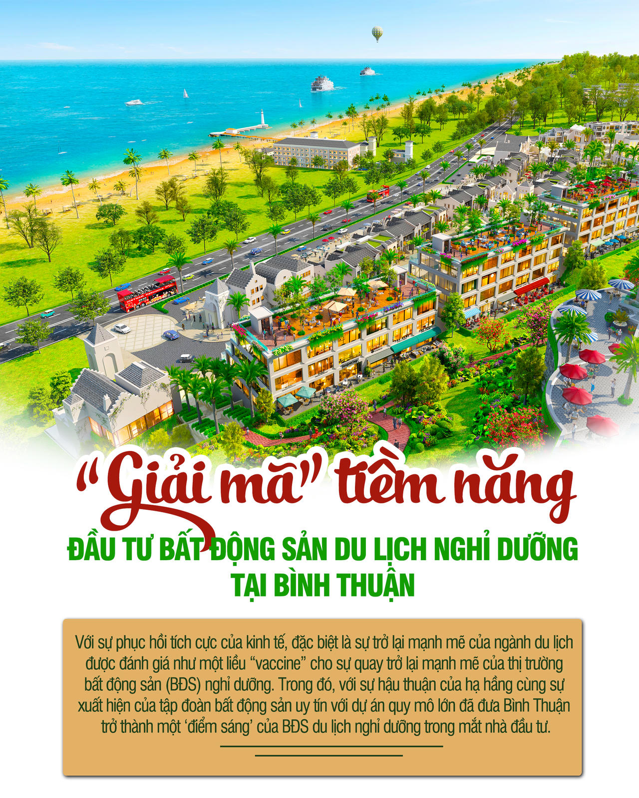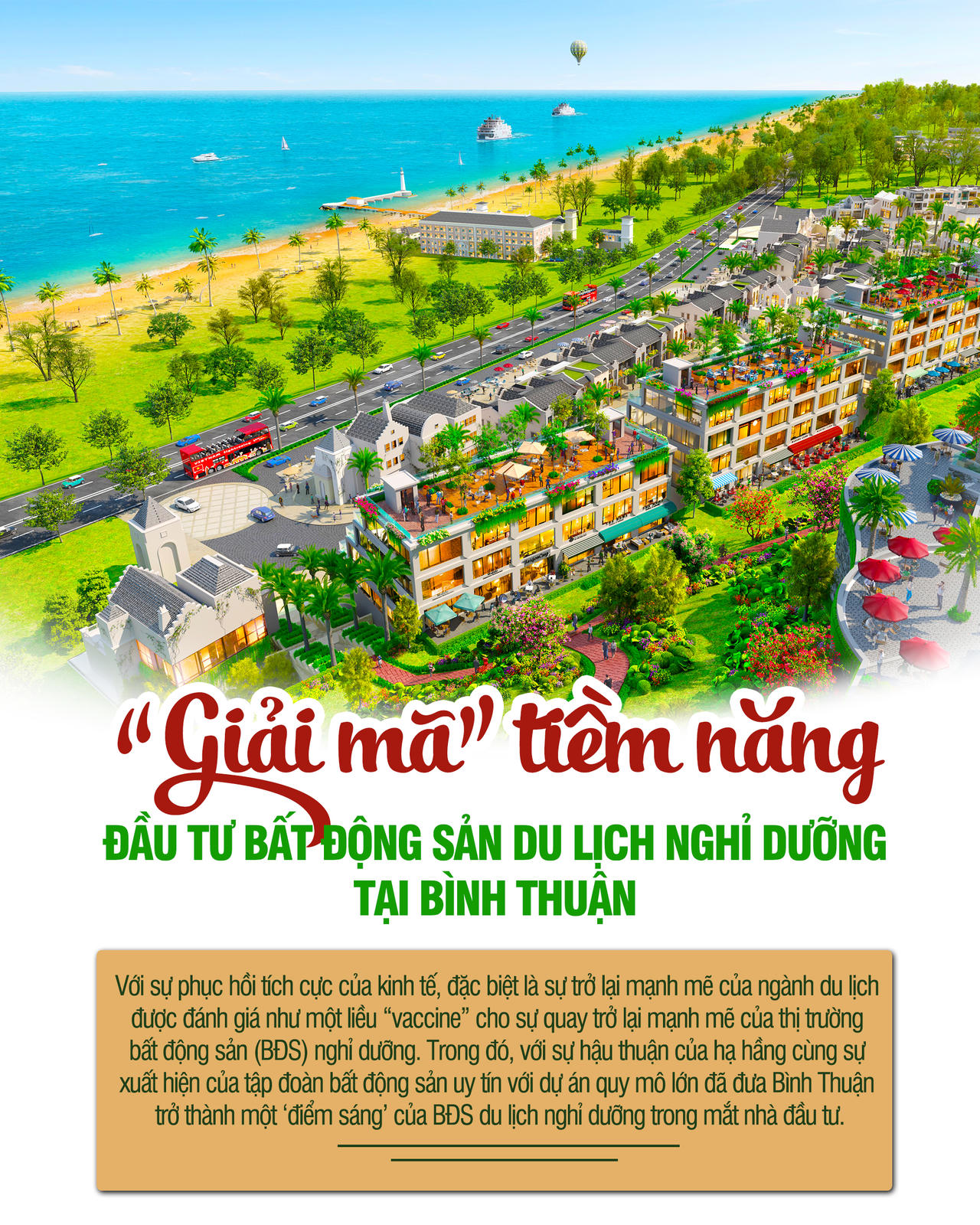 Với sự phục hồi tích cực của kinh tế, đặc biệt là sự trở lại mạnh mẽ của ngành du lịch được đánh giá như một liều “vaccine” cho sự quay trở lại mạnh mẽ của thị trường bất động sản (BĐS) nghỉ dưỡng. Trong đó, với sự hậu thuận của hạ hầng cùng sự xuất hiện của tập đoàn bất động sản uy tín với dự án quy mô lớn đã đưa Bình Thuận trở thành một ‘điểm sáng’ của BĐS du lịch nghỉ dưỡng trong mắt nhà đầu tư.