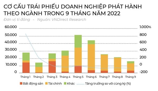 Thực tế, theo thống kê của Công ty Chứng khoán VNDirect, tổng giá trị trái phiếu doanh nghiệp phát hành trong quý III/2022 đạt 60.635 tỷ đồng, giảm 50,5% so với quý trước và giảm 70,9% so với cùng kỳ. Trong quý này, tổng giá trị trái phiếu phát hành của các doanh nghiệp bất động sản là 4.300 tỷ đồng, giảm mạnh so với cùng kỳ năm ngoái. Chỉ có một doanh nghiệp phát hành trong tháng 7 là Đầu tư Kinh doanh Bất động sản Hà An (210 tỷ đồng); trong tháng 8, chỉ có 2 đợt phát hành từ Fuji Nutri Food (1.000 tỉ đồng) và Đầu Tư và Kinh Doanh Nhà Khang Điền (800 tỷ đồng).