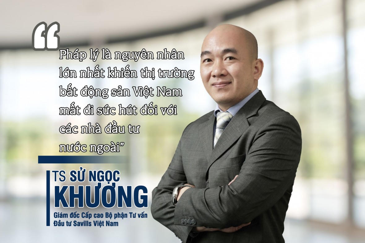 Pháp lý là nguyên nhân lớn nhất khiến thị trường bất động sản Việt Nam mất đi sức hút đối với các nhà đầu tư nước ngoài là đánh giá của TS Sử Ngọc Khương, Giám đốc Cấp cao Bộ phận Tư vấn Đầu tư Savills Việt Nam. Theo đó, để khơi thông dòng vốn vào bất động sản, đặc biệt là dòng FDI cần phải giải quyết được vấn đề pháp lý.