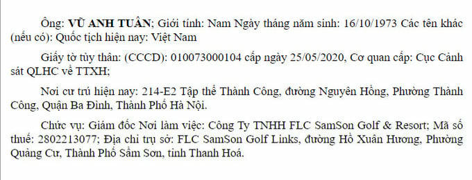 Ông Tuân cũng đang giữ chức Thành viên HĐQT CTCP Đầu tư Khai khoáng và Quản lý tài sản FLC từ đầu năm 2023.