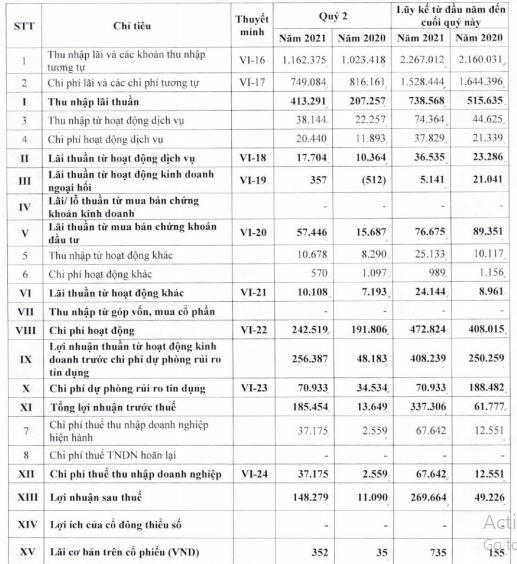 Cụ thể, thu nhập lãi thuần 6 tháng đầu năm 2021 tăng 43% so với cùng kỳ, đạt hơn 738,5 tỷ đồng. Lãi thuần từ hoạt động dịch vụ đạt hơn 36,5 tỷ đồng, tăng 57%. Lãi thuần từ hoạt động kinh doanh khác tăng mạnh 171% , đạt hơn 24 tỷ đồng.