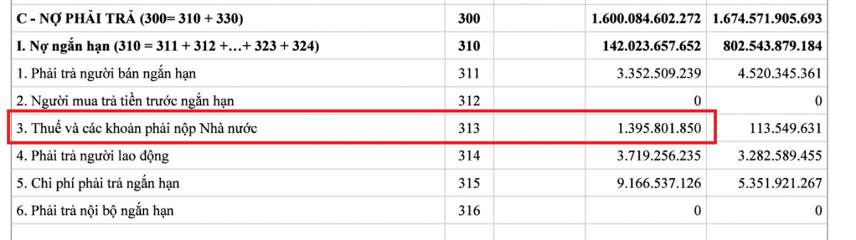 Tại ngày 31/12/2023, Taseco Group ghi nhận thuế và các khoản phải nộp Nhà nước đạt 1,4 tỷ đồng, tăng mạnh so với con số 1145 triệu đồng của năm 2022.