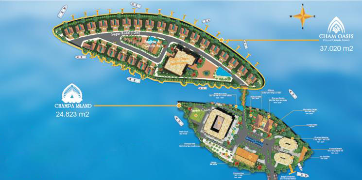 Là giai đoạn 2 của Khu phức hợp dịch vụ du lịch nghỉ dưỡng Champa Island, Cham Oasis Villa có tổng diện tích 37.020m2 bao gồm 48 biệt thự sở hữu bến du thuyền riêng với quyền sở hữu đất ở lâu dài.