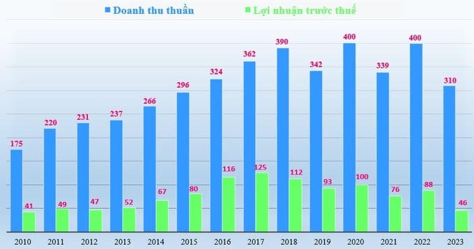 Như vậy, doanh thu thuần đã rơi về mức thấp hơn năm 2016, còn lợi nhuận trước thuế rơi về mức thấp hơn năm 2012.