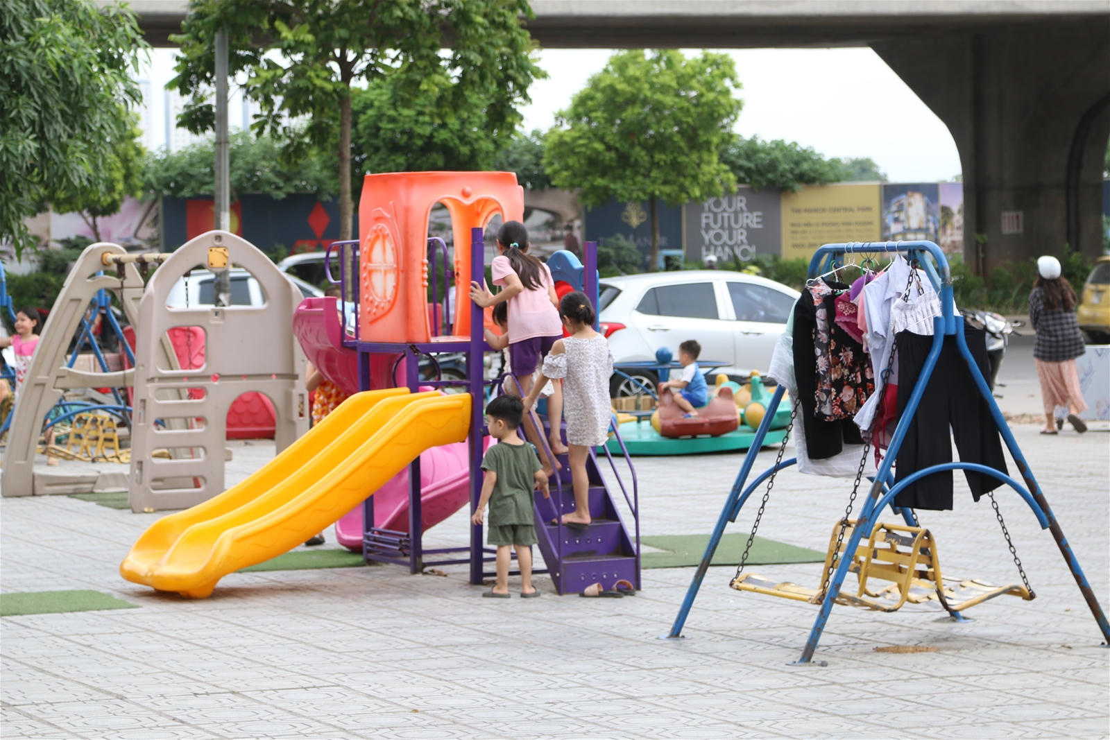 Khoảng sân chơi nhỏ bé,trở thành không gian quý giá với mỗi cư dân đô thị, đặc biệt là người già và trẻ nhỏ