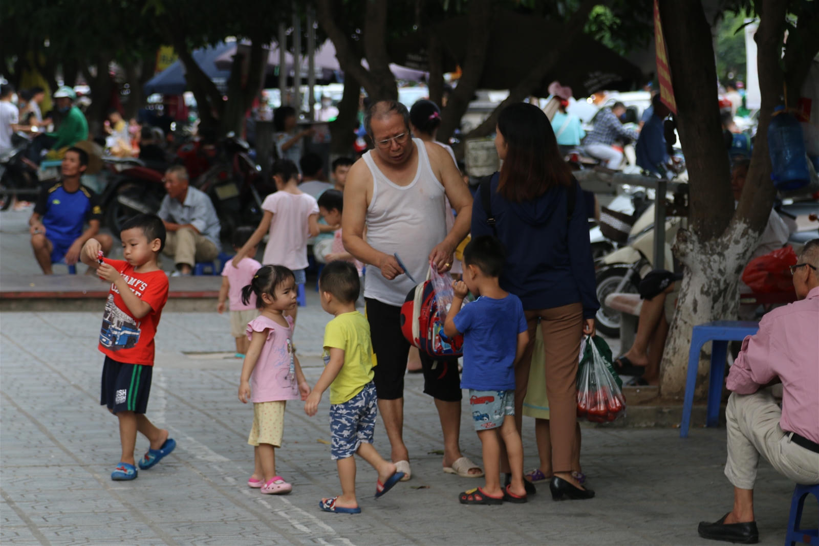 Cả ngày đã phải học hành ở trường mà về nhà cứ bắt bọn trẻ ở trong nhà xem tivi với nghịch điện thoại nhiều khi cũng thấy khổ thân các cháu. Xuống sân chơi cũng phải xuống sớm lúc chưa có nhiều trẻ, khi nào nhiều người xuống chơi thì ông cháu dắt nhau về.