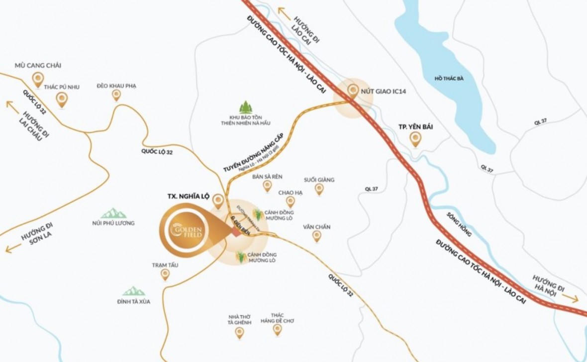 Sở hữu 9,9 ha ngay trung tâm thung lũng Mường Lò, Dự án khu đô thị Golden Field Nghĩa Lộ là khu đô thị kiểu mẫu đầu tiên của tỉnh Yên Bái. Đây là một trong những dự án đất nền có quy mô lớn tại thị xã Nghĩa Lộ, hứa hẹn sẽ thu hút đông đảo khách hàng và nhà đầu tư quan tâm.