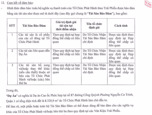 Lô trái phiếu này được bảo đảm bằng các tài sản là: Cổ phần của các cổ đông tại Goden Hill; các tài sản liên quan đến dự án 87 Cống Quỳnh; và các tài sản bổ sung và/hoặc thay thế khác (nếu cần thiết) thuộc sở hữu của Golden Hill và/hoặc các bên thứ ba.