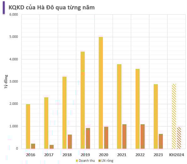 Kết thúc quý I/2024, Hà Đô ghi nhận doanh thu đạt 847 tỷ đồng, giảm 11% so với cùng kỳ; lợi nhuận sau thuế đạt 264 tỷ đồng, giảm 26%. Trong năm nay, Hà Đô đặt kế hoạch doanh thu gần 2.900 tỷ đồng, lợi nhuận sau thuế 972 tỷ đồng, tăng lần lượt hơn 0,2% và 12% so với năm 2023.