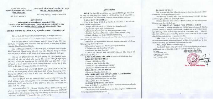 Quyết định phê quyệt Hồ sơ mời thầu Gói thầu số 14 của Bộ Chỉ huy Bộ đội Biên phòng tỉnh Hà Giang. Ảnh chụp màn hình