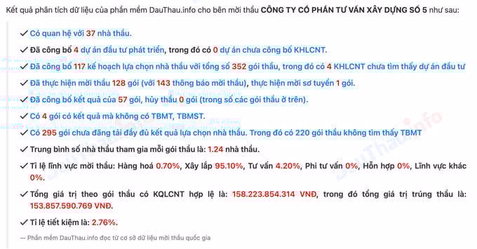 Theo đói, gói thầu này nằm trong Dự án: Đường từ UBND xã Nàn Xỉn đi Mốc 201/2 và đến Mốc 197 huyện Xín Mần, tỉnh Hà Giang với mức giá 100.367.399.000 (Một trăm tỷ ba trăm sáu mươi bảy triệu ba trăm chín mươi chín nghìn đồng chẵn), do Công ty Cổ phần (CTCP) Tư vấn Xây dựng số 5 (SC5) là đơn vị đứng ra mời thầu.
