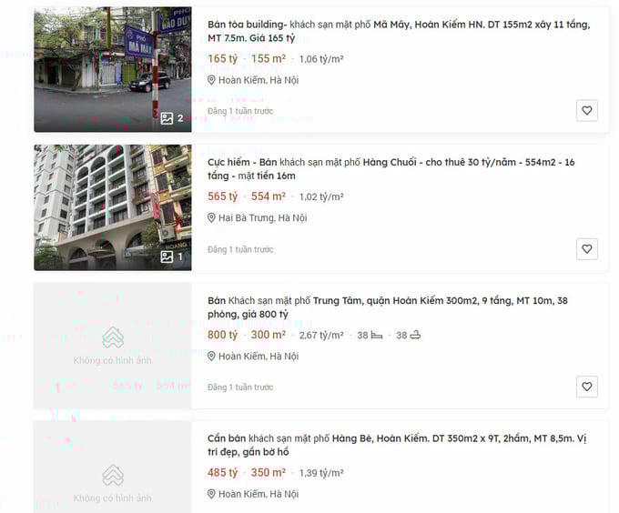 Lấy đơn cử như một Khách sạn mặt phố Trung Tâm, quận Hoàn Kiếm, rộng 300m2, 9 tầng, mặt tiền 10m, 38 phòng đang được rao bán với giá 800 tỷ (gần 2,67 tỷ/m2). Nếu làm phép so sánh thì số tiền mua được 1m2 tại khách sạn này sẽ mua được cả 1 căn hộ chung cư 2 phòng ngủ ở nội thành Hà Nội.