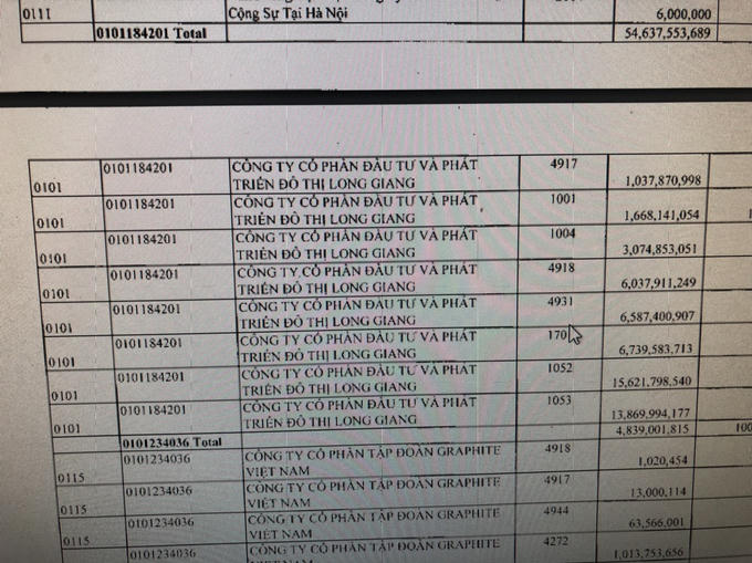 Tiếp đến, Công ty cổ phần tập đoàn Graphite (mã số thuế 0101234036) nợ hơn 4,8 tỷ đồng; trong đó, nợ tiền chậm nộp thuế giá trị gia tăng gần 2 tỷ; khoảng 1,7 tỷ tiền phạt vi phạm hành chính trong lĩnh vực thuế…