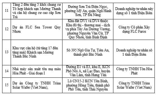Nhà máy sản xuất tôn mạ màu Hòa Phát – Giai đoạn I tại đường E1 và E3, KCN Phố Nối A (xã Lạc Đạo, huyện Văn Lâm, Hưng Yên) của Công ty TNHH Tôn Hòa Phát; dự án Công ty TNHH Trina Solar Wafer (Viet Nam) tại lô CN15-2 KCN Yên Bình (phường Hồng Tiến, TP Phổ Yên, Thái Nguyên)…