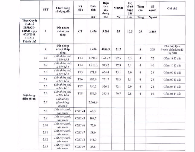 UBND TP. Hà Nội cho rằng, việc điều chỉnh nhằm cụ thể hóa Quy hoạch chung xây dựng Thủ đô đến năm 2030 và tầm nhìn đến năm 2050, quy hoạch phân khu đô thị N10, tỷ lệ 1/2.000 đã được cấp có thẩm quyền phê duyệt; chủ trương điều chỉnh chức năng từ nhà ở cao tầng sang nhà ở thấp tầng đã được UBND thành phố chấp thuận.