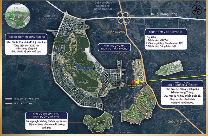 Dự án KĐT Tiến Xuân do Sudico Tiến Xuân làm chủ đầu tư với quy mô diện tích hơn 1.200 ha, tổng mức đầu tư lên đến 2.000 tỷ đồng.