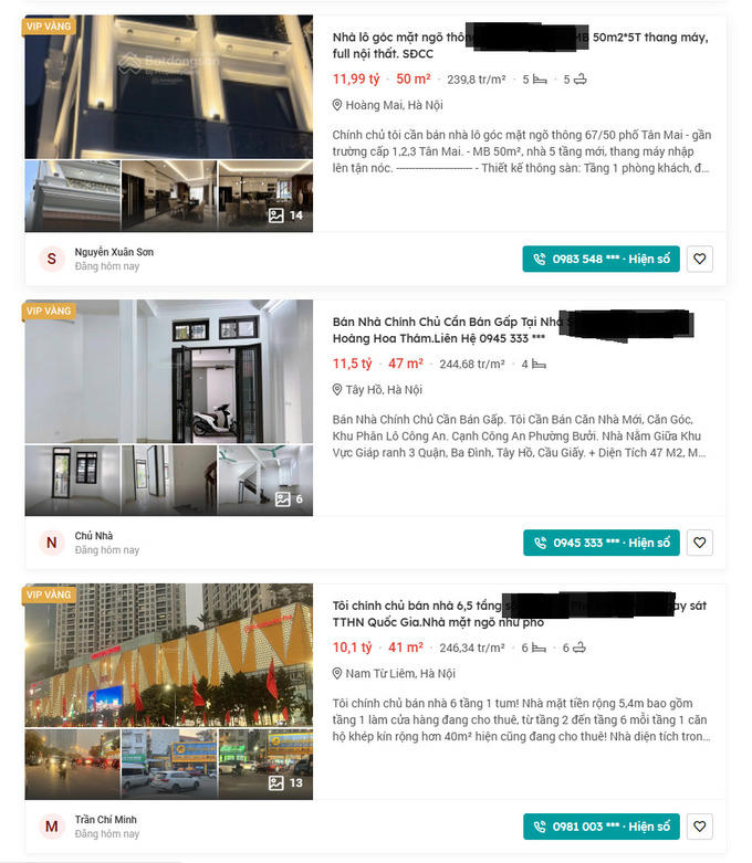 Cụ thể, nhà ở riêng lẻ khu vực ngõ Gốc Đề, quận Minh Khai, với diện tích khoảng 34 m2, giá chào bán vào khoảng 160 triệu đồng/m2; nhà ở riêng lẻ khu vực phố Thái Hà, quận Đống Đa, với diện tích khoảng 46 m2, giá chào bán vào khoảng 290-314 triệu đồng/m2; nhà ở riêng lẻ khu vực phố Ngọc Lâm, quận Long Biên, với diện tích khoảng 43 m2, giá chào bán vào khoảng gần 200 triệu đồng/m2...