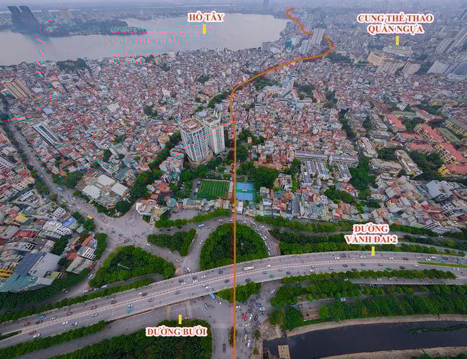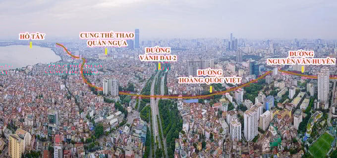 Tuyến này tiếp tục chạy theo đường Xuân Tào vào giữa đường Nguyễn Văn Huyên kéo dài, cắt ngang qua Khu đô thị Tây Hồ Tây (KĐT Starlake) sau đó hướng tuyến sẽ giao cắt với đường Vành đai 2 tại nút giao Bưởi và sang đường Hoàng Hoa Thám.