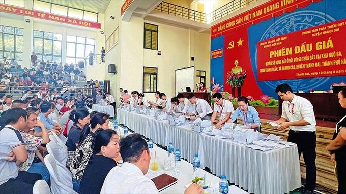 Gần đây, các phiên đấu giá đất tại các huyện ngoại thành Hà Nội như Thanh Oai, Hoài Đức, Đông Anh đã thu hút sự quan tâm lớn từ giới đầu tư. Nhiều phiên ghi nhận mức giá trúng rất cao so với giá khởi điểm. Tại Thanh Oai, một số lô đất có giá trúng đấu giá lên tới hơn 100 triệu đồng/m2, trong khi giá khởi điểm chỉ từ 20-30 triệu đồng/m2. Tuy nhiên, trong số đó, 55/68 lô đất đã bị nhà đầu tư bỏ cọc.