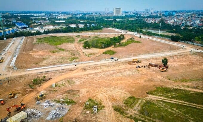 Theo ghi nhận của PV Tài chính Doanh nghiệp tại dự án ngày 12/3, dự án đang được quây tôn bốn phía, mở một lối cho xe ra vào phía mặt đường Đại lộ Thăng Long. Dự án đang triển khai thảm nhựa đường, xây dựng hạ tầng, xây nhà mẫu, chưa có công trình nhà ở nào được xây dựng.