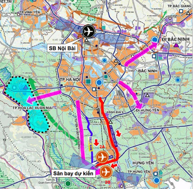 Hà Nội dự kiến triển khai sân bay trên sau năm 2030. Thành phố cũng sẽ bổ sung tuyến đường cao tốc đô thị và đường sắt đô thị kết nối từ đô thị trung tâm với sân bay thứ 2 vùng thủ đô.
