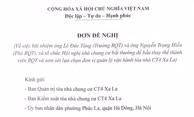 Trước tình hình căng thẳng này, nhiều cư dân toà nhà chung cư CT4 Xa La yêu cầu tổ chức một Hội nghị Nhà chung cư (HHNCC) bất thường để bầu lại BQT càng trở nên cấp thiết hơn bao giờ hết.