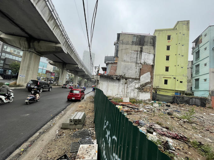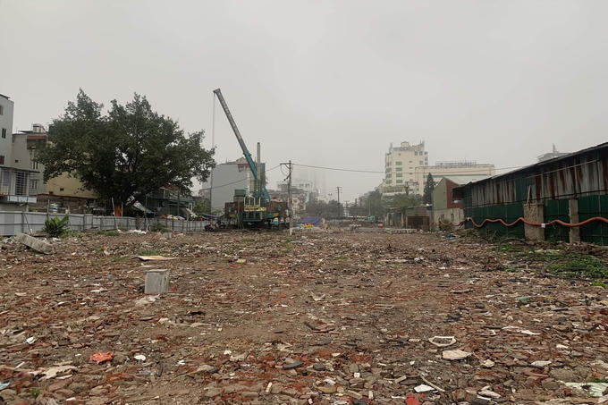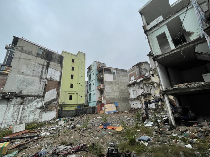 Khu vực này đang ngổn ngang đất đá và những ngôi nhà phá dỡ lem nhem.