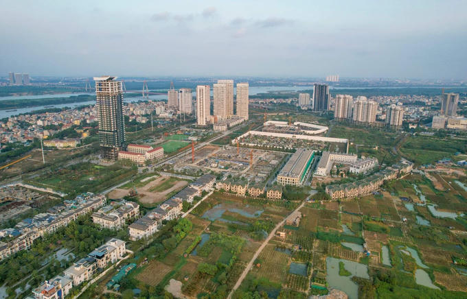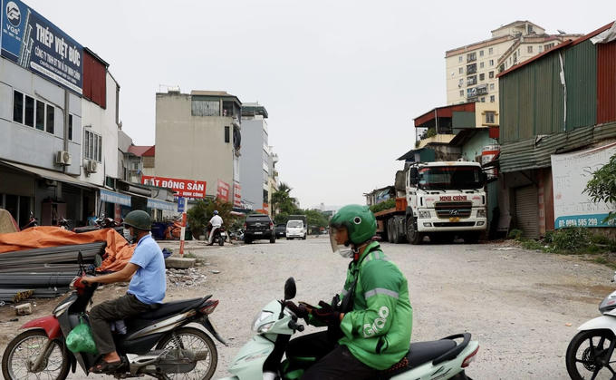 Tuy nhiên, nhiều đoạn thuộc tuyến đường này đang bị chậm tiến độ, thi công ì ạch. Trong ảnh, đường Vành đai 2,5 đoạn từ đường Nguyễn Hoàng Tôn đến đường Xuân Đỉnh mới được xây dựng một phần.