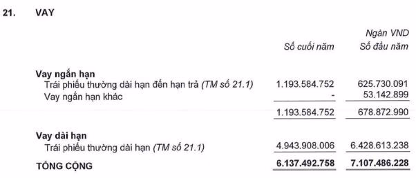 Được biết trong báo cáo tài chính hợp nhất năm 2021 của HAGL báo vay nợ trái phiếu lên tới 6.137 tỷ đồng, trong đó, vay ngắn hạn là 1.194 tỷ đồng, vay dài hạn là 4.944 tỷ đồng.