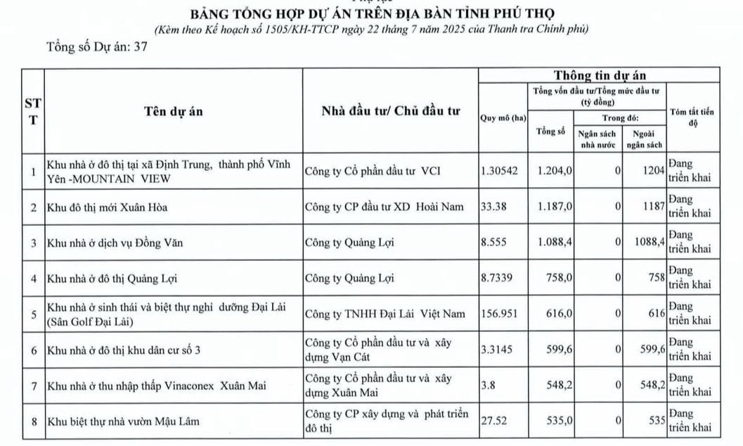 Hai dự án Khu nhà ở đô thị Quảng Lợi và Khu nhà ở dịch vụ Đồng Văn do Công ty Quảng Lợi là chủ đầu tư tại tỉnh Phú Thọ vào danh sách thanh tra của cơ quan có thẩm quyền.