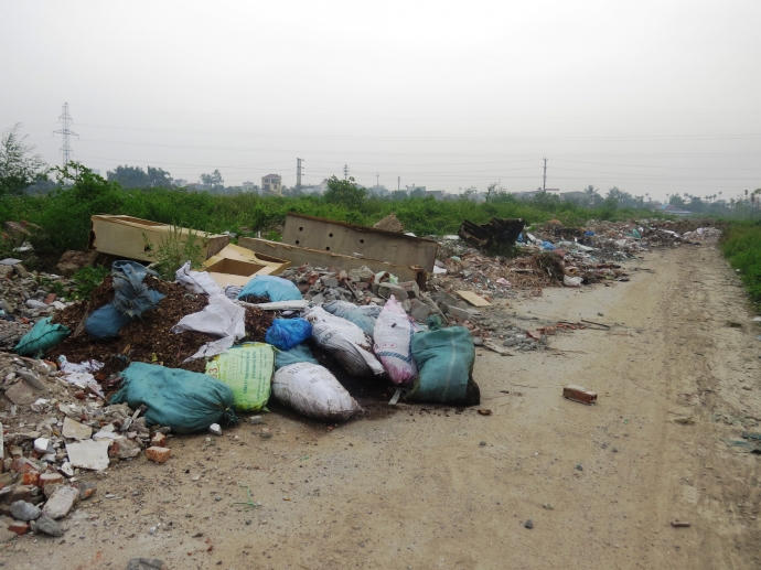 Đường 100m Lạch Tray - Hồ Đông giờ thành bãi tập kết rác thải khổng lồ