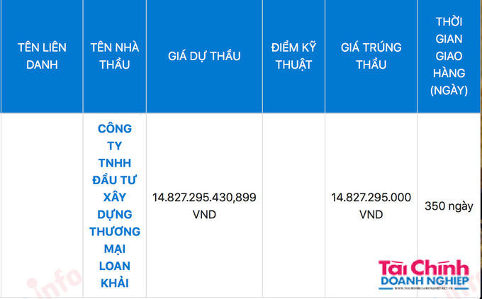 Cùng ngày 27/6/2024, ông Phạm Văn Hào, Giám đốc BQL DA ĐTXD huyện Thủy Nguyên cũng ký Quyết định phê duyệt kết quả lựa chọn nhà thầu Gói thầu 01D: Thi công xây dựng công trình giao thông (các tuyến TT2, TT3, TT4, DX5, DX7, DX10 và DX11) thuộc Dự án đầu tư xây dựng nông thôn mới kiểu mẫu xã Lưu Kỳ. Công ty Loan Khải trúng thầu với giá 15.591.496.000 VND (giá dự toán gói thầu là 15.643.487.000 VND), tiết kiệm cho ngân sách hơn 52 triệu đồng, tỷ lệ 0,3%.