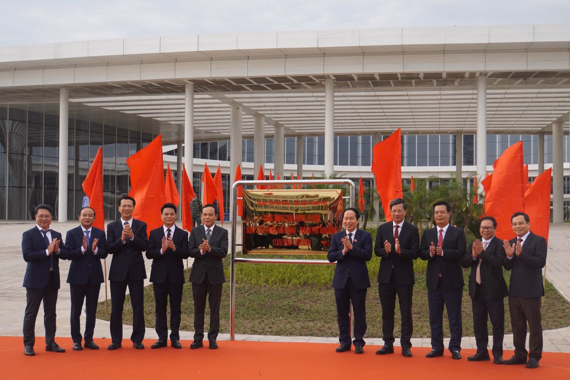 Đầu tiên là sự kiện gắn biển Công trinh chào mừng Kỷ niệm 70 năm Ngày Giải phóng Hải Phòng. Cấc dự án được gắn biển là Dự án Trung tâm Chính trị - Hành chính thành phố; Dự án Trung tâm Hội nghị - Biểu diễn thành phố tại thành phố Thuỷ Nguyên; Công viên nút giao nam cầu Bính.