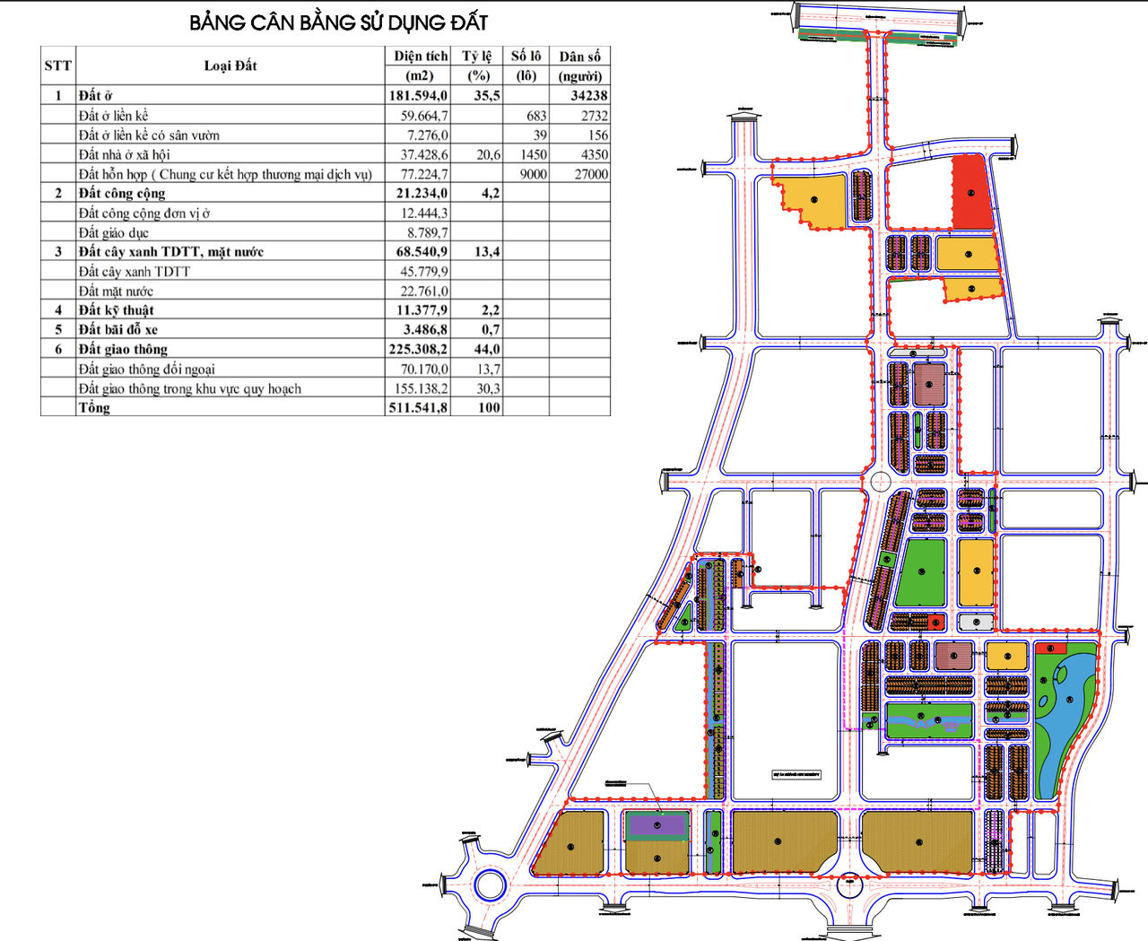 Dự án đầu tư xây dựng tuyến đường Đỗ Mười kéo dài đến đường trục VSIP và phát triển đô thị vùng phụ cận bao gồm 18,1 ha đất ở, 21,2 ha đất công cộng, 6,8 ha đất cây xanh và 1,1 ha đất kỹ thuật, 0,3 ha bãi đỗ xe và 22,5 ha đất giao thông.
