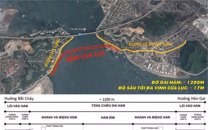 Theo thiết kế, hầm đường bộ xuyên vịnh Cửa Lục sẽ chạy song song với cầu Bãi Cháy, với quy mô 6 làn xe và tổng chiều dài khoảng 2.750m, trong đó chiều dài hầm là 2.140m (gồm 1.000m hầm dìm và 1.140m hầm dẫn).