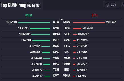Các cổ phiếu trụ cột như CTG, VJC, VCB, GVR, PNJ, VCG, ACB… đều tăng giá mạnh, trong đó, CTG tăng đến 4,8% lên 30.400 đồng/cp và khớp lệnh 5 triệu cổ phiếu, VJC tăng 3,7% lên 104.900 đồng/cp, VCB tăng 3,4% lên 85.800 đồng/cp. Một cổ phiếu thuộc nhóm Midcaps (vốn hóa vừa) là HSG tăng mạnh 6,3% lên 15.950 đồng/cp và khớp lệnh đến 15,6 triệu đơn vị. Ngoài ra còn phải kể đến sự bứt phá của nhóm phân bón khi VAF và DCM được kéo lên mức giá trần, LAS tăng 7,6%, DPM tăng 5,5%, BFC tăng 5%.
