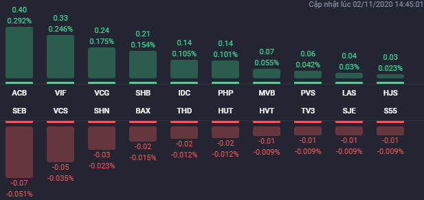 Tương tự như các phiên giao dịch trước, trong phiên ngày 2/11, thị trường chứng khoán Việt Nam biến động với biên độ hẹp cùng sự phân hóa mạnh ở nhóm cổ phiếu vốn hóa lớn. Các chỉ số duy trì được ở trên mốc tham chiếu nhờ lực đẩy của một số cổ phiếu trụ cột.