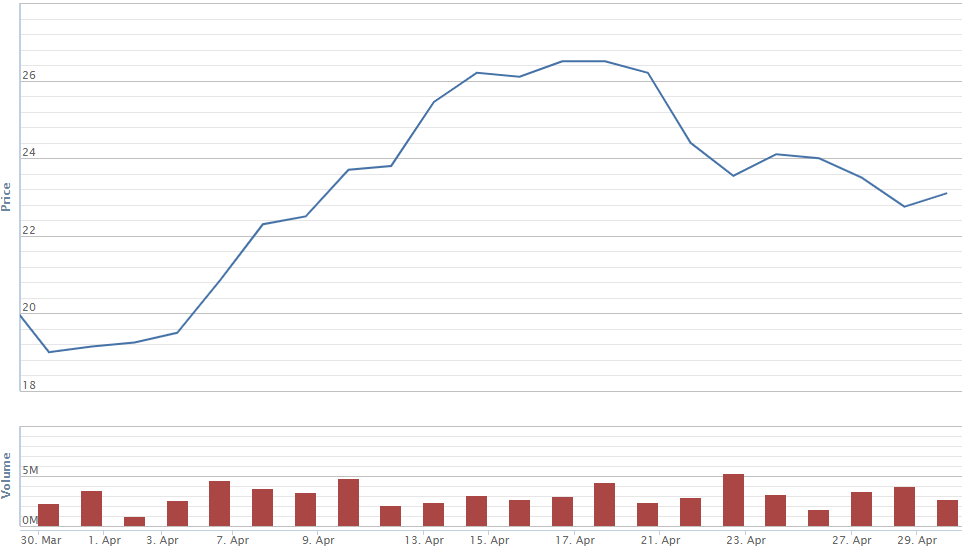 Diễn biến giá cổ phiếu CCL trong tháng 4. Nguồn: VNDirect.