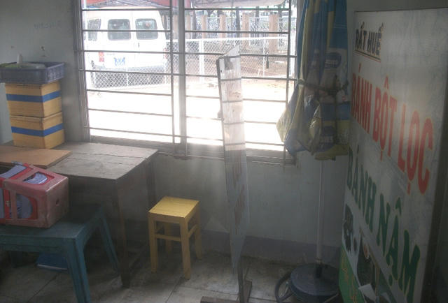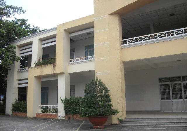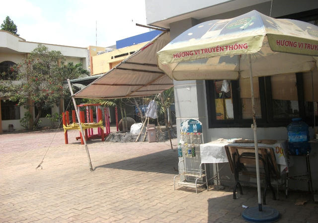 Một trụ sở cũ nằm đìu hiu hơn và được sử dụng toàn để bày bàn ghế nhựa bán… cà phê.
