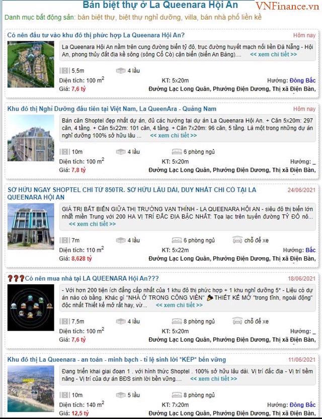 Cũng từ thời điểm đó, các sản phẩm tại dự án này bắt đầu được chào bán rầm rộ trên các website, mạng xã hội… Môi giới dự án cho biết, dự án La Queenara Hội An đã chính thức mở bán từ tháng 3/2021.