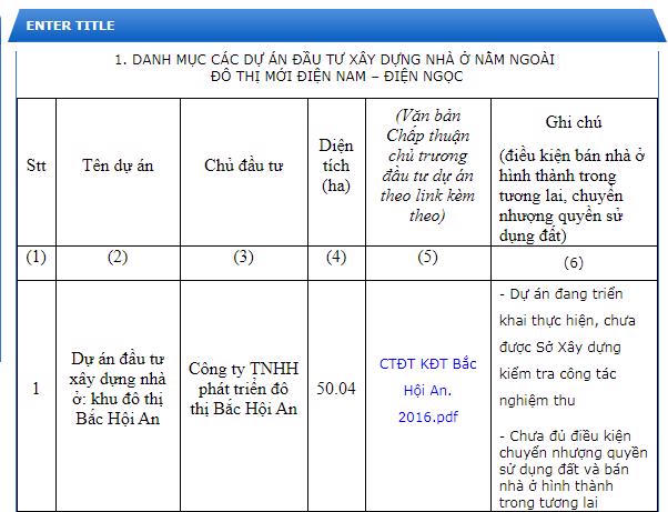 Như vậy, thời điểm chủ đầu tư phải hoàn thiện dự án này đã trôi qua gần 2 năm. Tuy nhiên, Khu đô thị thương mại dịch vụ Bắc Hội An hiện vẫn đang trong quá trình triển khai thực hiện, chưa được Sở Xây dựng kiểm tra công tác nghiệm thu, thậm chí chưa đủ điều kiện chuyển nhượng quyền sử dụng đất và bán nhà ở hình thành trong tương lai.