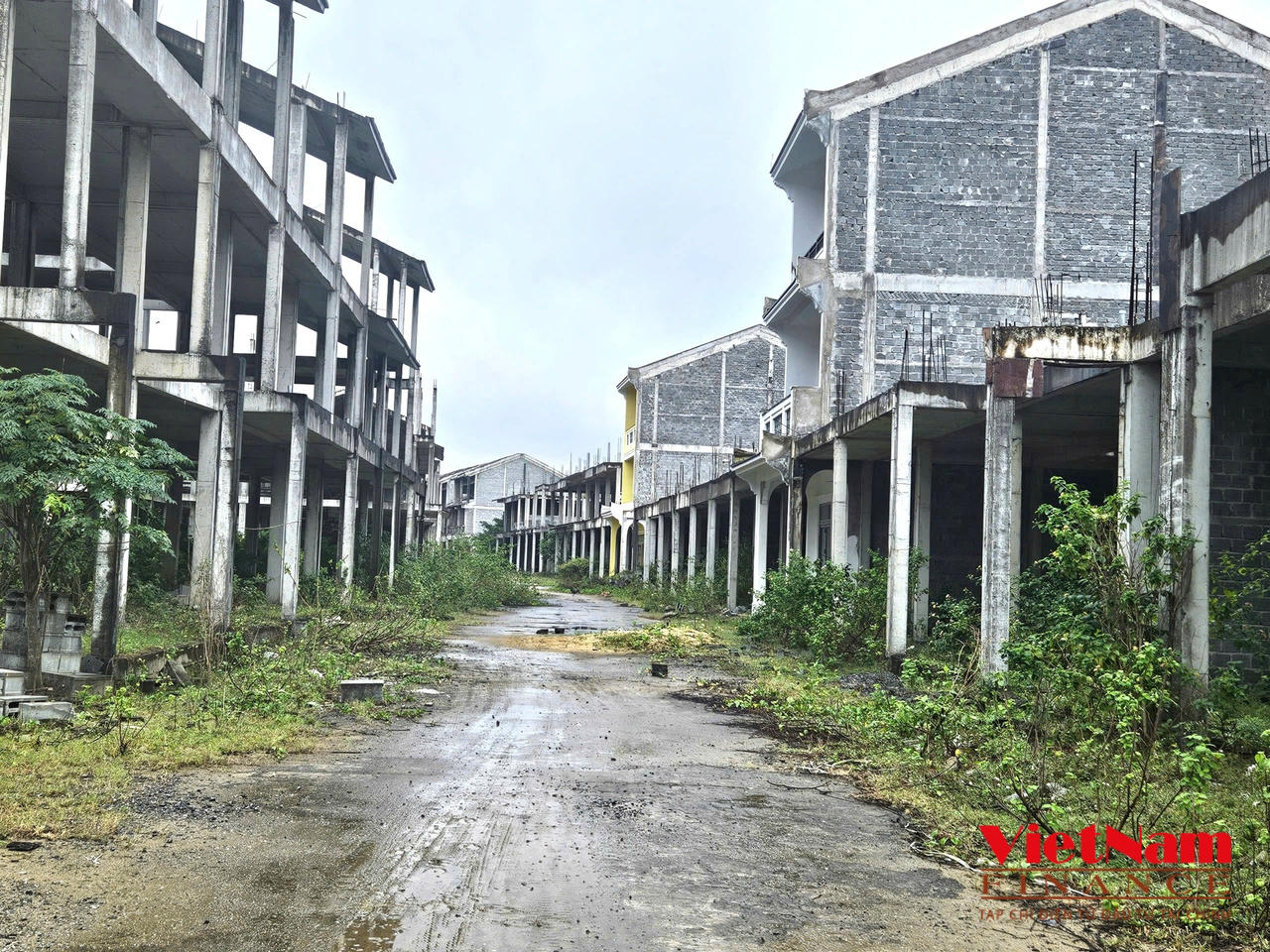 Loạt biệt thự, nhà liệt kề của dự án Homeland Paradise Village (Quảng Nam) được xây dựng dở dang rồi bỏ hoang nhiều năm nay, gây nhếch nhác.