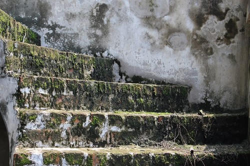 Do không có người ở nên rêu xanh mọc dày đặc bậc thang